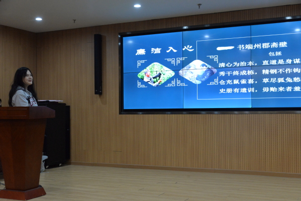 活动分为思廉洁、看影片、学模范、谈廉洁、省自身、解疑惑、聊感悟、齐朗读等八个环节。与会人员共同观看了廉洁主题微电影《归途》,学习了“全国优秀共产党员”、“时代楷模”刘伦堂同志先进事迹及“清廉如水,一心为民”的感人故事。学生们积极发言,表达了自己的体会和感悟。最后,大家齐声朗读包拯名诗《书端州郡齐壁》,在朗读声中受到感染和熏陶。