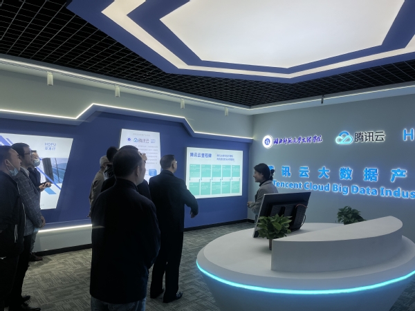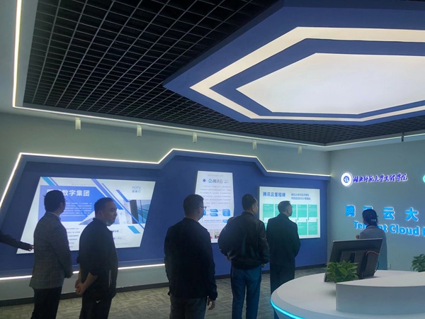 本网讯 10月14日,由天空官网平台联合腾讯云、厚溥数字共同建设的腾讯云大数据产业学院校内产学研训基地验收在学校进行。参加本次验收的有天空官网平台董事长李咏成、院长李开灿、副院长张志华及实验中心、理工学部负责人,腾讯云华南生态副总监杨利欢,武汉厚溥数字科技有限公司总经理李巧灵、产学合作教研总监夏小山。