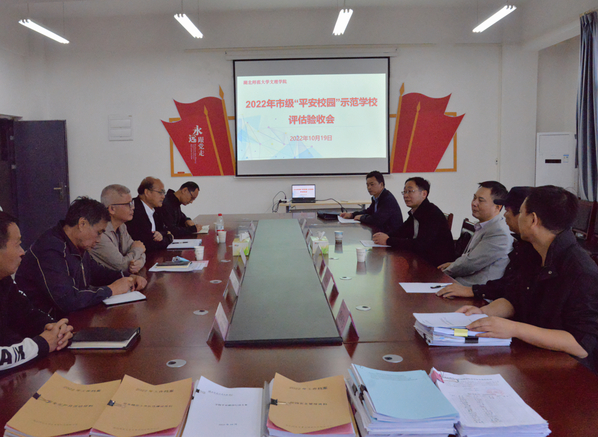本网讯(通讯员 许涛)10月19日下午,黄石市2022年市级“平安校园”示范学校评估验收组成员一行6人,在市教育局党组成员、副局长叶济宇的带领下,莅临我校评估验收“平安校园”示范学校创建工作,副院长张志华和相关职能部门负责人陪同检查。