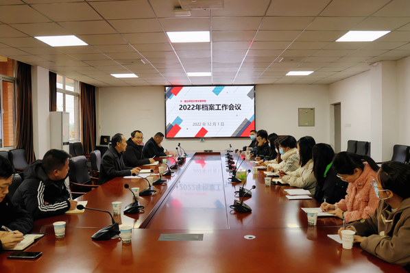 本网讯(通讯员 徐思诗)12月1日上午,我校召开了2022年学校档案工作会议。副院长王胜国,档案馆、教务部负责人及各部门兼职档案管理员参加了会议,会议由王胜国主持。