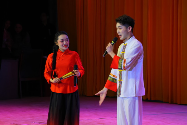 本网讯(通讯员 刘筱 杨思琦)歌声嘹亮,音符飘扬,青春激荡,梦想起航。3月13日晚7点,我校在学术交流中心报告厅举办“传中华文化 展华彩国韵”地域风格民族特色主题音乐会暨第二届《中国音乐名作赏析》课程实践展演,常务副院长杨学斌、党委副书记杨之毛、副院长张志华、副院长王胜国以及教育与艺术学部领导、学校相关部门负责人、教育与艺术学部全体学生参加音乐会。