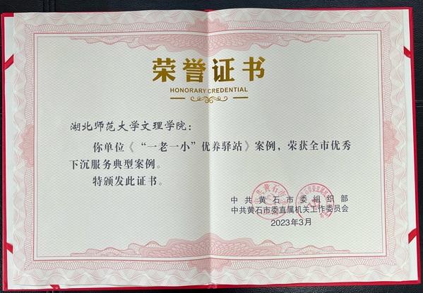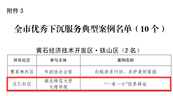 本网讯(通讯员 陈小龙)3月17日晚,黄石市2022年度下沉社区工作优秀个人与典型案例颁奖仪式在磁湖剧院举行。我校“一老一小”优养驿站获得市年度优秀下沉服务典型案例,驻社区第一书记陈小龙上台领奖。