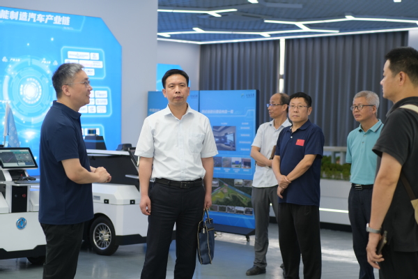 刘建民一行首先参观了东风悦享智能汽车产业学院、腾讯云大数据产业学院、教育与艺术学部等学部的实验室建设情况,详细询问了产教深度融合的办学模式、校企合作的办学特色、学生培育模式、在提高人才培养质量和竞争力方面的优势等情况。