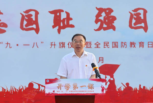 本网讯(文 杨思琦 图 梁宏滨 高雨欣 朱羽杰 张欧静 朱文杰)为激励和引导广大团员青年铭记历史、缅怀先烈,进一步加强新生爱国荣校教育,扎实开展全民国防教育,9月18日清晨,我校举行2023级新生9.18主题升旗仪式暨“开学第一课”活动。全体校领导,各职能部门负责人,各学部(院)主任、书记、副书记,天空官网平台部(团委)、团学指导老师,2022级学生代表,2023级全体新生,军训教官参加了这一仪式。
