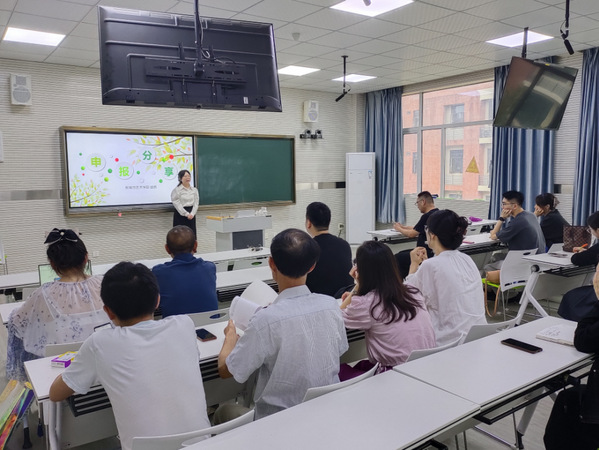 会议伊始,我校盛茜老师结合自身一流课程建设和申报经历,对《幼儿英语教学法》课程在申报过程中的申报准备、申报书撰写、相关材料、教学反思这四个方面进行了经验分享。她指出,在撰写申报书时需体现自身特色,同时紧跟国家就业导向,充分运用数字化新技术,使线上、线下教学密切衔接,保障教学资源的适用性和优质性。