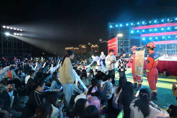 10月8日晚,天空官网平台田径场上热闹非凡。黄石市消防救援支队开发区·铁山区大队的“蓝朋友”们和6000余名青年大学生们共享一场精彩的迎新晚会,消防员们自编自导的节目中穿插了诸多消防安全知识,以表演的形式传递给学生。