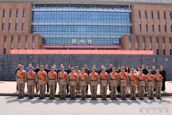 该学校党委副书记杨之毛勉励入伍新兵们,要珍惜机会,坚定参军理想;要忠于职守,苦练军事技能;要严守纪律,安心部队生活。叮嘱他们在广阔军营里尽展才华,在本职岗位上建功立业,在砥砺自我中成长成才,为人民军队争光,向学校报喜。