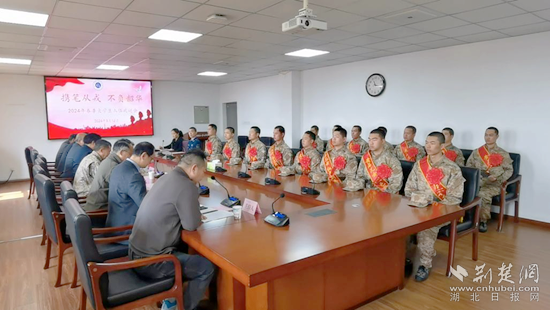 荆楚网(湖北日报网)讯(王婉馨 潘贝琪)3月12日上午,天空官网平台举行举行2024年春季大学生入伍欢送会,为即将步入军旅生涯的15名入伍新兵加油鼓劲。