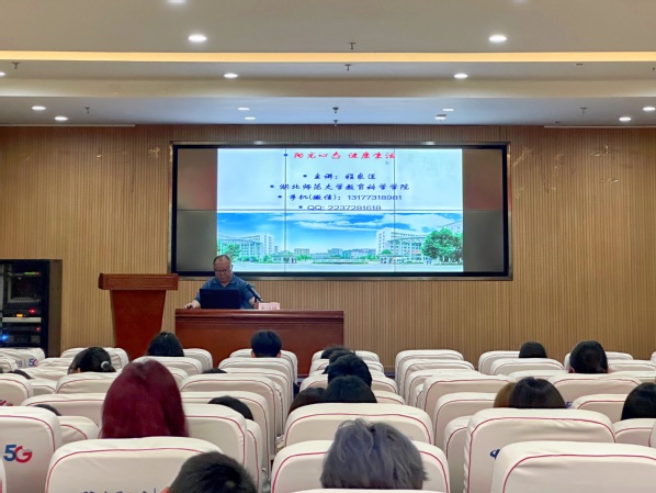 阳光态,乐生活。湖北师范大学程良道教授给学子们带来的是《阳光心态,健康生活》讲座。程教授通过心理学中著名的“软糖实验”、“跳蚤实验”、“青蛙实验”引入,指出大学生们心理适应能力和应变能力在当代社会的重要性。讲座中,程教授用专业的理论知识、诙谐幽默的语言,详细讲解了身心健康的“五快”、“三良”标准,结合具体案例生动讲解了大学生人际关系问题及其调试策略。最后,程教授祝愿同学们在今后的生活中学会接纳自我,善待他人,用阳光心态享受快乐人生。