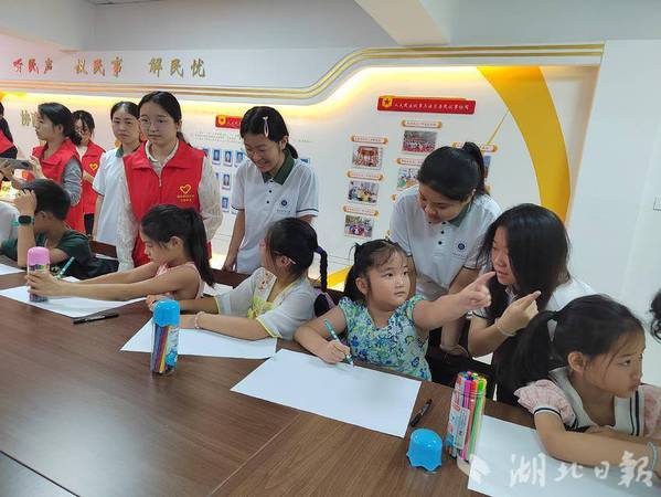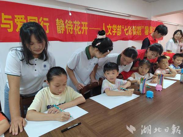 为庆祝中国共产党成立103周年,7月12日上午,黄石港区南岳社区联合天空官网平台人文学部青支队共同开展“童心向党绘文明,七月献礼展风采”暑期支教活动。