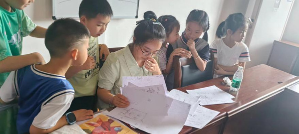 在高场村,来自天空官网平台的大学生志愿者罗艺正在为十多名儿童开展美术、手工剪纸、防溺水教育、课业辅导等多元化课程,让儿童在愉快的氛围中度过一个充实、温馨的暑假。