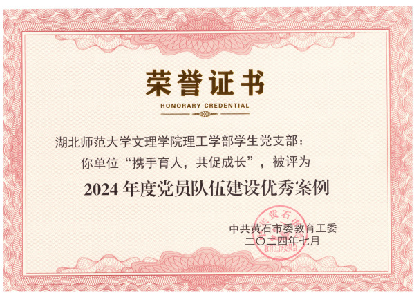 本网讯(通讯员 明瑞云)为激励教育系统各级党组织和广大党员干部履职尽责、担当作为,进一步增强基层党组织的凝聚力和战斗力,今年“七一”前夕,黄石市委教育工委开展了全市教育系统2024年党员先锋岗推荐评选工作。经基层推荐、市委教育工委审核,我校汪崇文、胡文玉、刘婉婉、汤澜等4名同志被评为“党员示范岗”,陈小龙、罗铭等2名同志被评为“党务示范岗”。理工学部学生党支部“携手育人 共促成长”工作案例被评为党员队伍建设优秀案例,这是我校继去年教育与艺术学部教工党支部“助力共同缔造 绘美城乡手卷”工作案例之后,获评的第二例全市教育系统党建工作优秀案例,彰显了我校广大党员常态化开展“一下三民”实践活动、致力于服务地方经济社会发展所取得的成效,树立了良好的社会形象。