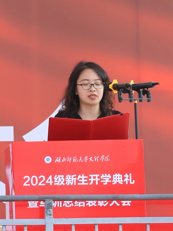 教师代表汪婷以“修德、存志、惜时、笃行”寄语新生,勉励同学们立德为先,立志成才,珍惜时光,踏实行动,全面发展。