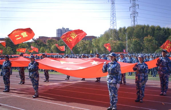新生代表朱颖发言时表示:“军训,不仅锻炼了我们的体魄,更磨砺了我们的意志。烈日下的坚持,汗水中的成长,让我们学会了团队合作、勇于担当、坚持不懈。”