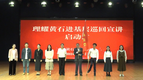 市委常委、市委宣传部部长王玲宣布“理耀黄石”进基层巡回宣讲活动正式启动,并向宣讲团授旗。