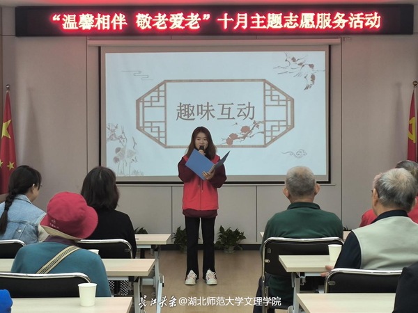 青丝情系银发,朝阳温暖余晖。10月25日,我校教育与艺术学部木栾花志愿服务队赴黄石市湖滨路社区联合开展“温馨相伴 敬老爱老”主题志愿服务活动。