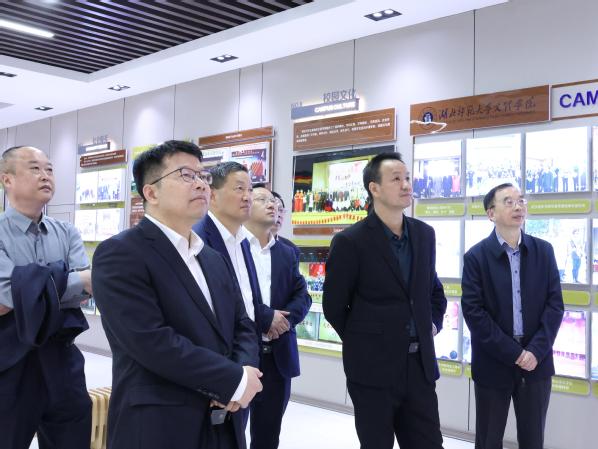 在校史陈列馆,戴伟一行观摩我校的发展建设沙盘,了解了学校的发展历史,询问师资队伍建设情况。他们对学校校园建设、办学条件、产教融合、技能培养给予了充分肯定;对学校数字化、信息化教育赋能提出了新要求;对办人民满意的教育、服务地方经济发展、培养更多高素质应用型人才提出了新希望。戴伟表示,湖北省教育厅将持续支持学校的各项发展工作,希望我校能够把握机遇,为社会输送更多高质量人才。