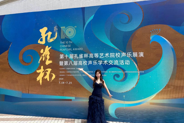 雷越淇作为我校2023级的学生,在她选择的“孔雀杯”全国高等艺术院校声乐展演参赛组别中,无论是经历还是经验都不占优势。路虽长,只管前行;山虽高,只管攀登。雷越淇说:“一开始是抱着一种挑战自我的心态,只想着专注于过程,希望能通过比赛提升自己的技能。”