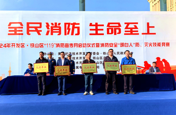 本网讯(通讯员 涂亦乐)11月12日,在开发区·铁山区2024年“119”消防宣传月启动仪式上,我校荣获开发区·铁山区消防安全委员会授予的2024年度消防工作“先进单位”荣誉称号。