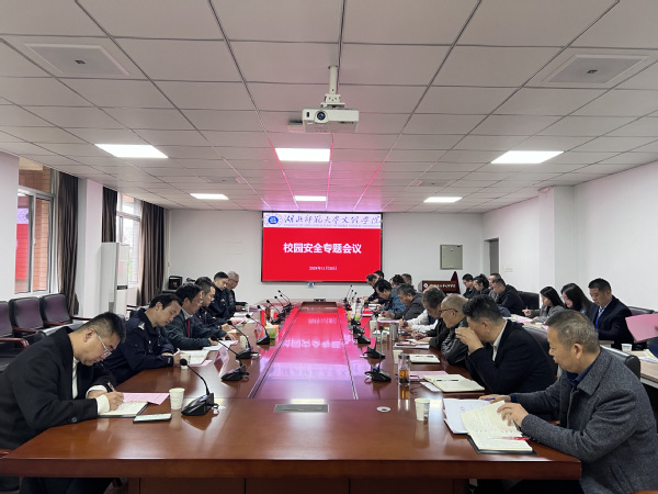 本网讯(通讯员 涂亦乐)11月20日上午,我校在行政楼303会议室召开校园安全稳定工作专题会议。党委书记杨邓红、党委副书记杨之毛、副校长张志华、市公安局内保支队长龚良洪、开发区铁山区公安局副局长李松、汪仁派出所副所长李福奎出席会议,学校各相关职能部门和各教学单位及食堂负责人参加会议,会议由杨之毛主持。