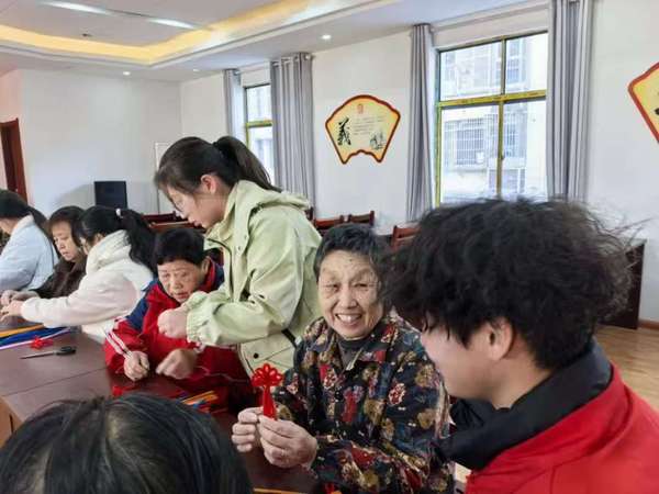 “扭扭棒,它们有着毛茸茸的质地,可以随意弯、折、扭,就可以做出精美的小饰品,今天,我们就学习用扭扭棒制作绒花、中国结……”活动中,青年志愿者们向老人们讲解了所选材料扭扭棒的特点,演示了花卉的制作方法。老人们边听边做,巧手翻飞,DIY了寓意吉祥、形态各异的小饰品。大家相互帮助,分享技巧,互相交流、鼓励,与志愿者们欢笑连连。