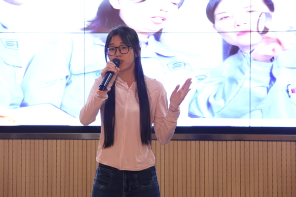B组选手吴烨讲述着身边的“雷锋精神”践行者,号召同学们挺膺担当,用行动续写雷锋故事;孙芳华介绍了我校“只郢有爱”支教团队和雷锋月公益集市的实践故事,将雷锋精神具象化地呈现在观众面前;田玉兰以自己的故事为蓝本,讲述了懵懂“顽石”在学姐的引路下被“点燃”的成长蜕变。
