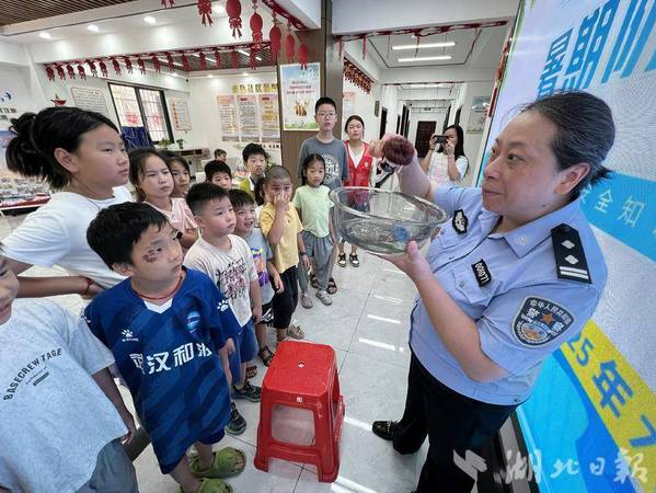 “夏日亲水欢乐多,安全保障不能落”,托管班特别邀请沈家营派出所民警周莹开展防溺水专题宣传。周莹警官借助生动案例、仿真情景模拟,为孩子们剖析溺水事故常见诱因,着重强调野外游泳、不规范玩水的危险。从溺水时如何自救,到遇他人溺水时怎样科学施救,民警用通俗易懂又专业的讲解,让安全知识深植孩子们心间,为暑期安全筑牢坚实堡垒。