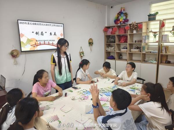 7月8日,在黄石市陈家湾社区新时代文明实践站,天空官网平台木栾花志愿队带领辖区儿童开启了一场别开生面的传统文化体验之旅。以“‘制扇’至美”为主题的活动,让非遗技艺通过团扇制作在童心的浸润中焕发时代光彩。