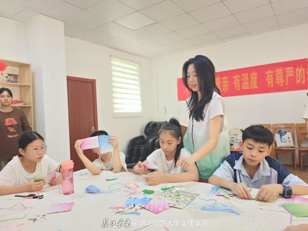 活动现场,五颜六色的绢卡纸和款式精美的流苏等材料整齐摆放。志愿者们手把手指导小朋友们边折边剪,将零散的材料组装成扇。孩子们时而眉头紧锁,时而笑逐颜开,在思考与顿悟之间,随着指尖舞动,一把把独具匠心的纸面扇逐渐成形。孩子们兴奋地展示着自己的作品,并表示将其带回家珍藏。