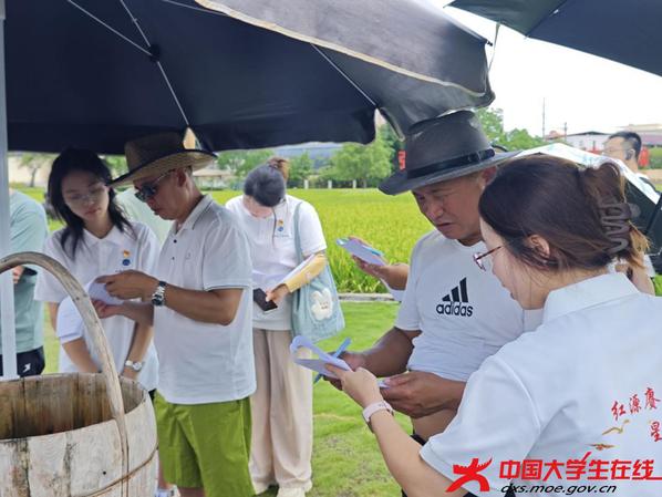 实践期间,团队深入红井景区开展实地调研。他们亲身体验了红井打水,深刻感悟中国共产党始终不变的为民情怀,表示一定饮水思源,不忘初心。在“吃水不忘挖井人”纪念碑前,成员们通过问卷调查、随机访谈等方式,深入了解群众对弘扬红色文化的意义,喜闻乐见的传播方式,红色文化对自己的影响等方面的问题,为宣讲好红色文化掌握第一手材料。