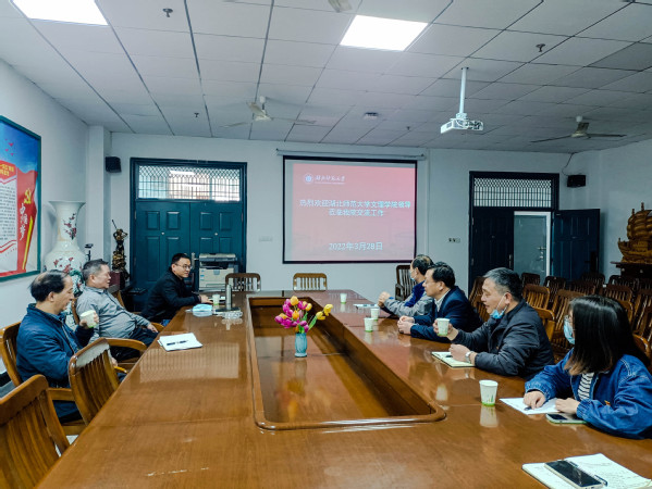 湖北师范大学数学与统计学院、马克思主义学院领导对我校一行的到来表示热烈欢迎。数学与统计学院党总支书记罗四清、院长吴爱龙,马克思主义学院党总支书记程焰等向我校详细介绍了全国党建工作样板支部培育、创建、验收标准以及建设思路、具体做法、工作特色、经费使用及工作成效等方面的经验。各位领导强调,要做好党支部品牌建设,一是要有效“对标”开展党建工作;二是要根据实际情况,凝聚支部党员资源优势,打造支部党建特色;三是加强阵地宣传与推广,有效发挥党支部的示范引领作用。