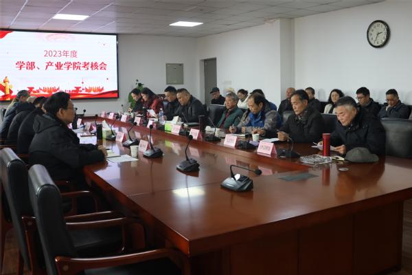 本网讯(通讯员 赵胜)为进一步加强学校干部队伍建设,提升干部的思想素质和管理能力,1月8日,我校召开2023年干部年终考核会。全体校领导,学部主任,副处级及以上干部,各产业学院负责人参加会议。常务副院长杨学斌主持会议。