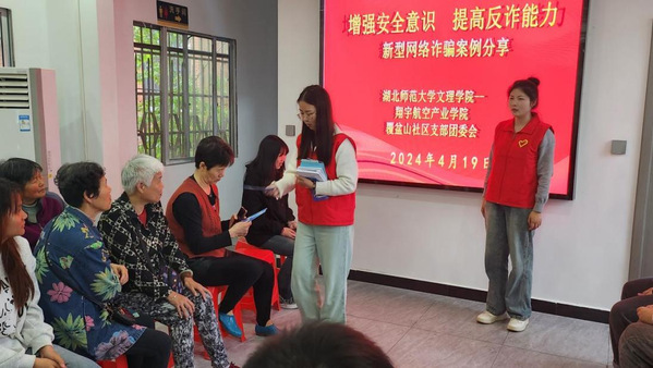 本网讯(通讯员 谢紫云)4月19日下午,我校翔宇航空产业学院赴黄石港区覆盆山社区,开展“反诈反邪我们在行动”活动,向社区居民宣传、宣讲反诈骗、反邪教知识。