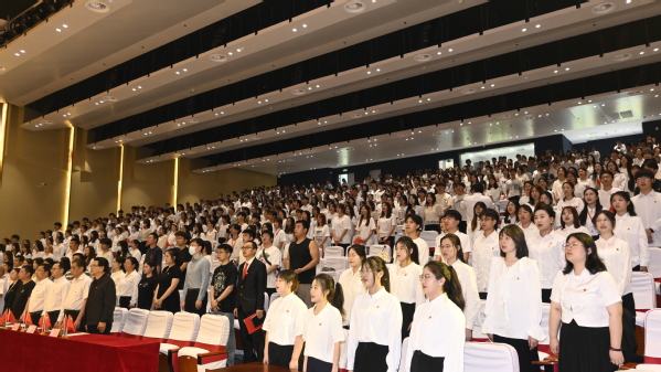 优秀共青团干部姜希望代表受表扬者团员、青年向在场团员发出五点倡议:一是争做理想远大,信念坚定的模范;二是争做刻苦学习,锐意创新的模范;三是争做敢于斗争,善于斗争的模范;四是争做艰苦奋斗,无私奉献的模范;五是争做蓬勃向上,严守纪律的模范。