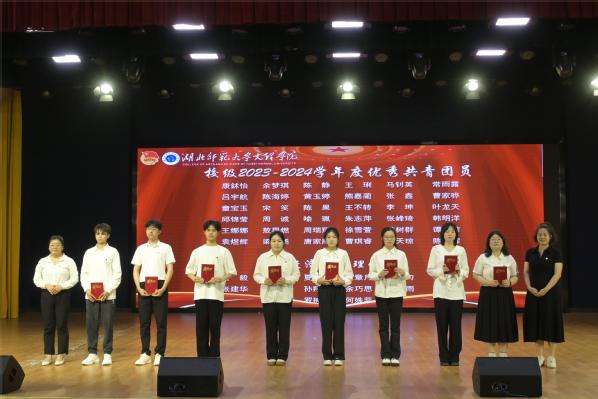 校团委书记陈荟芸宣读表扬决定,对我校1个红旗团总支,8个红旗团支部,225名优秀共青团干部,359名优秀共青团员进行表扬,现场领导代表为优秀团员及团支部颁奖。