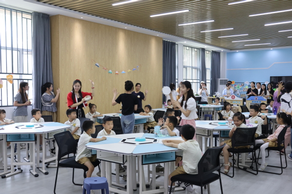 “一班一活动,一师一幼儿,一室一指导”的原则,贴合实训室的特点,活动在早期阅读实训室、蒙台梭利实训室、保育实训室、手工实训室、智慧幼儿园实训室、奥尔夫实训室和物理演示实验室同时进行。大学生们精心策划了活动,包括科技展览、皮影戏、手工制作、音乐游戏、趣识动物、娱乐互动等。这些活动不仅推动孩子们的能力发展,还增进了师生的互动与交流。孩子们在活动中展现出高昂的热情和积极性,他们与老师一起完成任务,在快乐中接受知识,在观察中学会思考