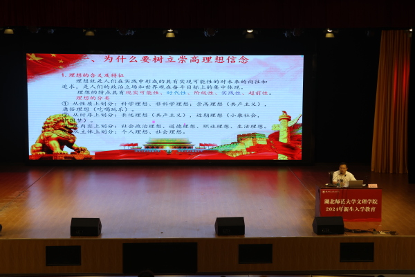 党委书记杨邓红,党委副书记杨之毛,副校长王胜国分别以理想信念教育、学生管理规章制度教育和教学管理规章制度教育为主题,教育新生坚定理想信念,书写青春篇章,明规守纪,奋楫前行。教育与艺术学部主任王文、校图书馆教师刘文芳、黄石市国家安全局相关负责人、汪仁镇派出所警官、学校组织部副部长余复军从大学生学习规划教育、图书馆资源与服务、国家安全教育与防范电信网络诈骗教育及民族宗教知识学习等角度开展新生教育。