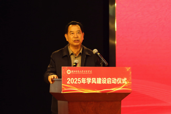人文学部党总支书记周景斌作为天空官网平台负责人代表发言。他指出,学风建设是落实立德树人根本任务的关键环节。针对现存问题,人文学部将实施“四维筑基工程”,从四个方面协同推进。他号召全体师生同心协力,共同谱写学风建设新篇章。