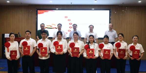 随着庄严的国歌响起,表彰大会正式开始“我志愿加入中国共产党……”全体党员举起右拳,跟随优秀党员代表柯康敏同志一同重温入党誓词。