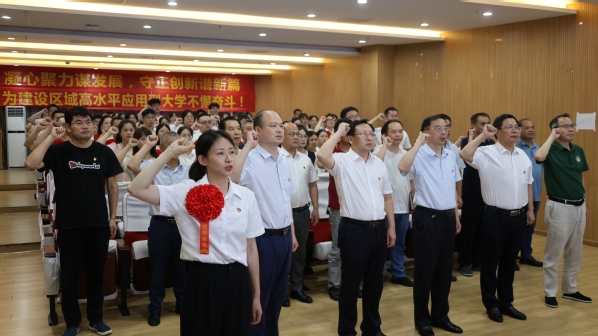 本网讯 6月30日下午,我校在图书馆报告厅召开庆祝中国共产党成立104周年暨表彰大会。全体校领导,副处级以上党员干部,各党支部书记副书记教职工党员及学生党员代表参加了此次会议。会议由党委副书记纪委书记许光主持。