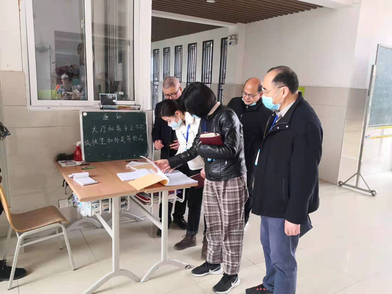 检查组首先检查了校门管理和门卫值班情况,然后听取了学校春季学期开学和和常态化条件下的校园疫情防控工作情况汇报,现场对相关资料台账进行了检查,最后深入学生公寓和食堂对宿舍、食堂管理和饮食保障等进行检查。