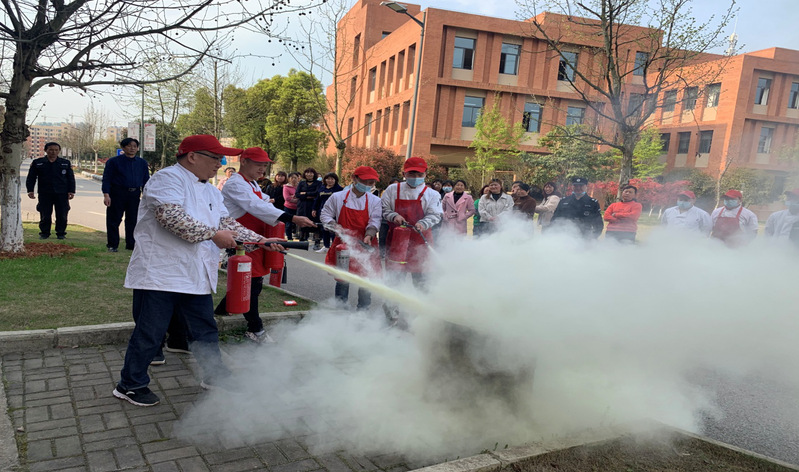 首先组织参训人员对消防器材使用进行培训。主要讲解了火灾发生的原因、怎样预防火灾、火场逃生基本知识,食堂油锅着火的正确处理方法以及如何正确报警等方面。同时,演示了灭火器、消防栓、灭火毯的正确使用方法和注意事项。
