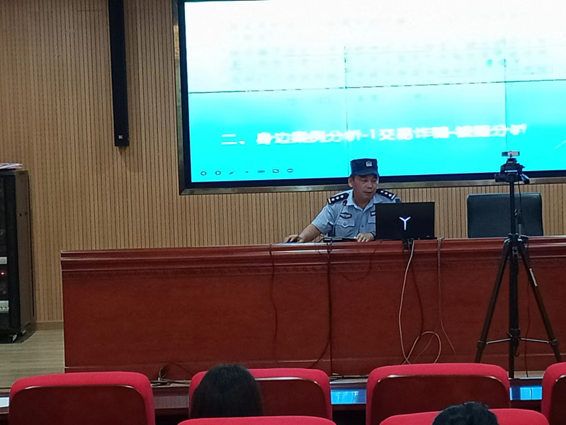 为预防和减少校园电信网络诈骗案件的发生,提高广大师生防范电信诈骗的意识和能力,9月16日下午,开发区·铁山区公安分局汪仁派出所民警刘天森来到我校,开展预防电信网络诈骗知识宣讲。