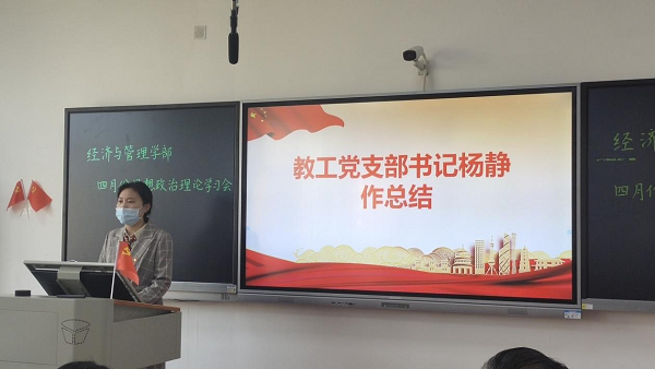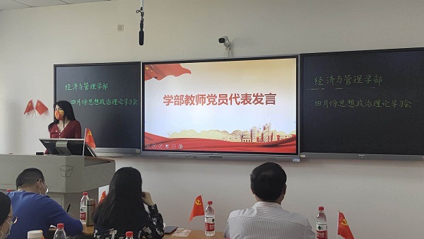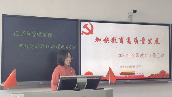 202247日下午14:30,经济与管理学部于实验楼2-403教室召开了4月份思想政治理论学习会。参加此次会议的有经济与管理学部全体教职工、学生党员及预备党员,会议由学部学生党支部书记罗铭同志主持。