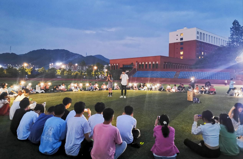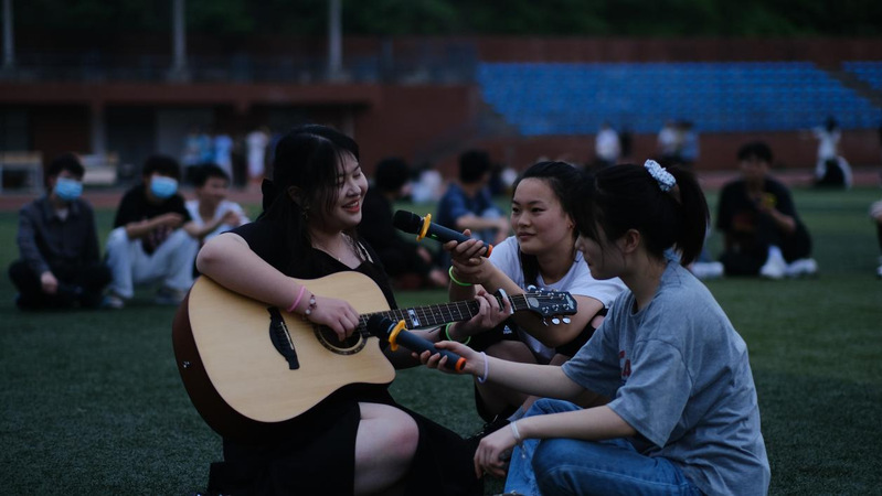 在结束游戏之后,大家围成圈,开始进行才艺表演。有悠扬的吉他弹唱、动感的舞蹈、快节奏感的说唱、现下火爆的流行曲……同学们纷纷积极表演才艺,用曼妙的舞蹈、飞扬的歌声再一次将全场氛围推向高潮,场上再一次听到了大家响亮的欢呼声与掌声。