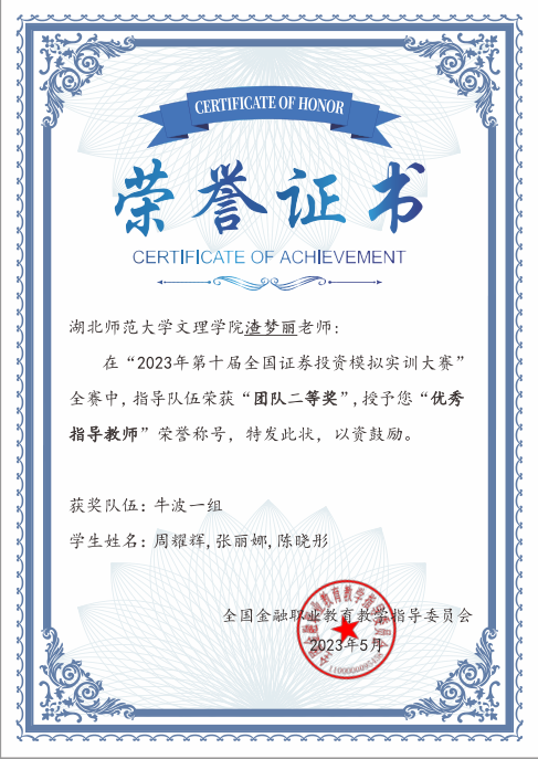 由全国金融职业教育教学指导委员会组织的2023年第十届全国证券投资模拟实训大赛在5月12日顺利结束。此次大赛是以证券业为背景,基于证券从业者所应具备的行业知识、基本业务技能及实操技能等设计的综合实训大赛。共有本科组296所院校的13711支队伍(每队三人),共41133人参赛,职教组226所院校的6500支队伍、19500人参赛。