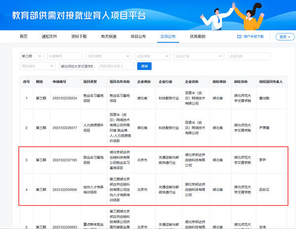近日,教育部公布了第三期供需对接就业育人项目立项名单,我校共有10个项目获批立项,其中经管学部成功斩获2个项目,分别为吕彩云老师负责的定向人才培养培训项目与罗尹老师负责的就业实习基地项目,合作企业均为湖北京邦达供应链科技有限公司。