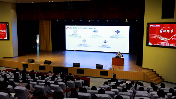 为帮助学生掌握金融领域前沿知识,提升职业规划能力,1121下午,经济与管理学部在学术交流中心举办了主题为探索金融世界,规划职业未来”专题讲座。本次讲座招商证券股份有限公司财富管理部业务主管、副总裁滕腾主讲。学部主任徐燕、党总支副书记罗铭、学工办老师、经济学专任教师代表参加本次讲座