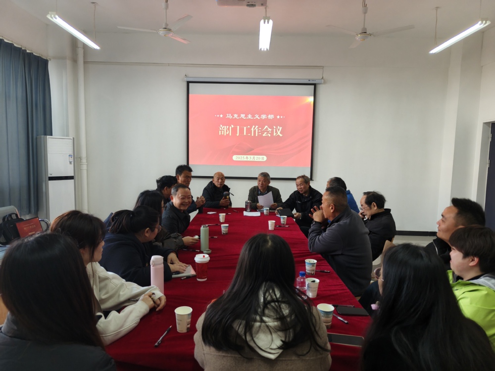 2025320午,马克思主义学部在3号实验楼208会议室召开部门工作会议学部全体教职工参加学部主任周青山主持会议