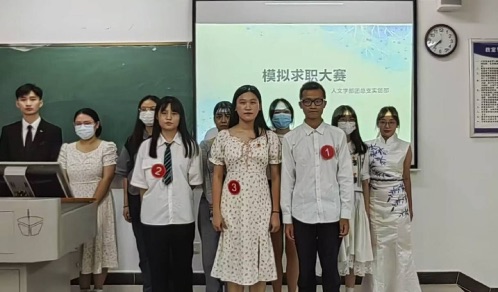 2022年9月21日晚,人文学部在教学楼1A403举办了线下模拟求职大赛,本次活动旨在帮助学生认识和展示自我,以及明确求职目标和提高就业技巧。